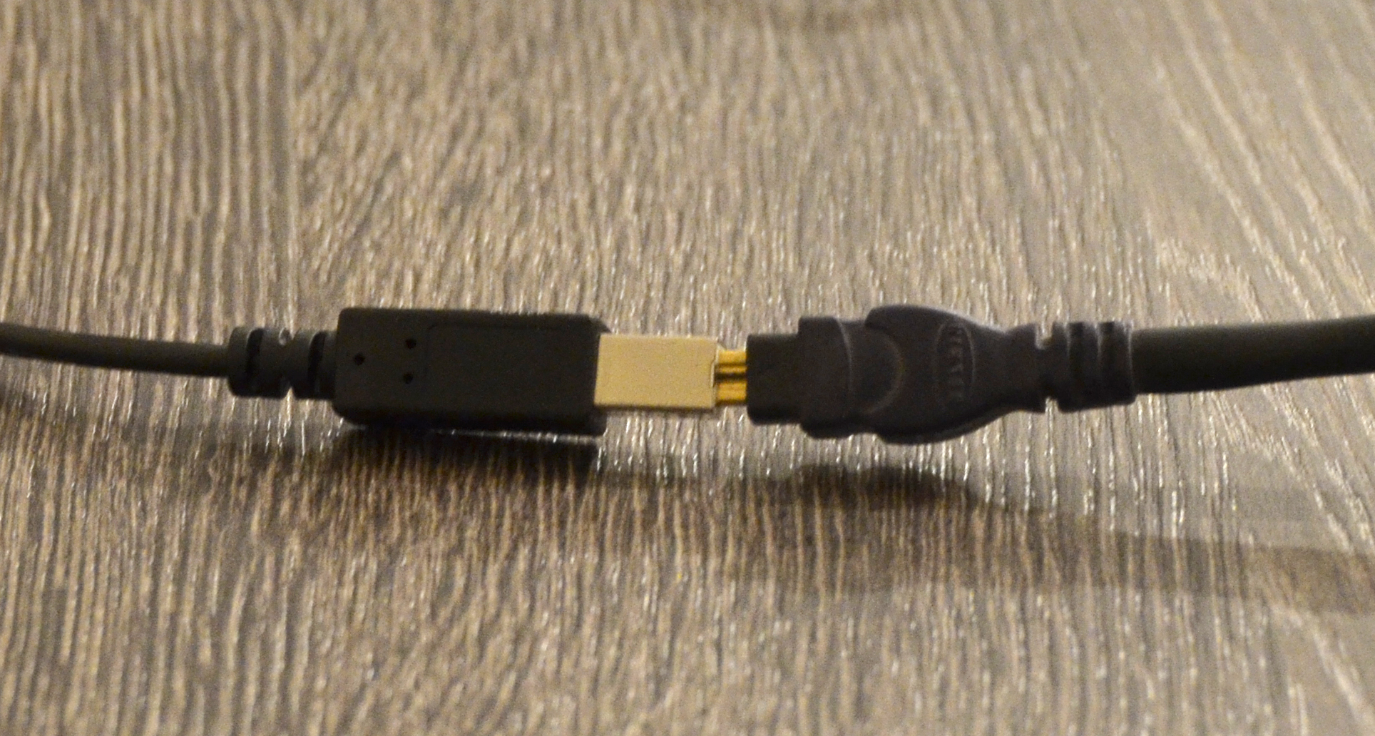 Propratim kuda vodi taj USB kabl i ispadne da se završava četvrtastim USB konektorom koji obično postoji na štampačima, a u taj četvrtasti konektor je umesto štampača utaknut... FireWire mini kabl od DV kamere. Tada su se još koristile DV kamere.